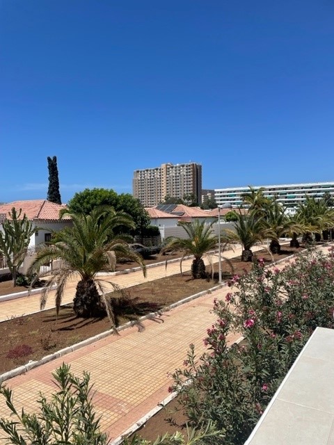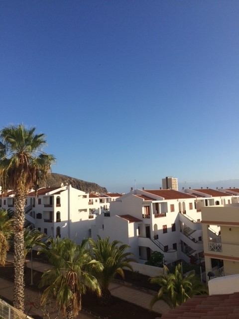 14B1 is a ground floor apartment in the ‘sunny’ block in the very popular Victoria Court 1 complex in Los Cristianos. The patio is due south facing and so enjoys all day sun. By contrast the bedroom is in the shade all day and, as such, relatively (this being Tenerife) cool.
